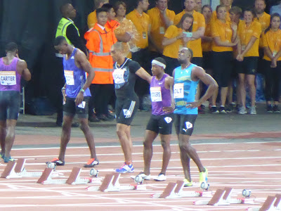 However, then it was announced Usain Bolt would be running the 100m on the Friday. And he is the sport's one great superstar and box office attraction. So there was a rush in ticket sales. So I wasn't a happy bunny to find the upper tier was open, but I had still been demoted. But then I found that the numbered lower tier seat I had been given didn't actually exist, so I was restored to the upper tier, along with a £10 refreshment voucher to compensate for being messed about. Ok. But there were other consequences. Simply they hadn't deployed enough staff for the number of people attending. Meaning long queues for programmes but more annoying, humongous queues for refreshments, next to closed refreshment kiosks. In the end I did get my drink, but at the expense of missing the first track event.