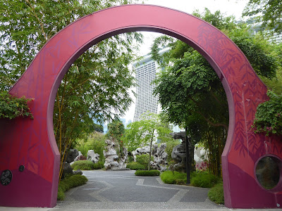 Surrounding the "supertrees" in the middle is a long circuitous walk taking in a series of separate gardens, eg a Chinese Garden, an Indian Garden, a Colonial Garden. So I set off to explore each of them, starting with the Chinese..